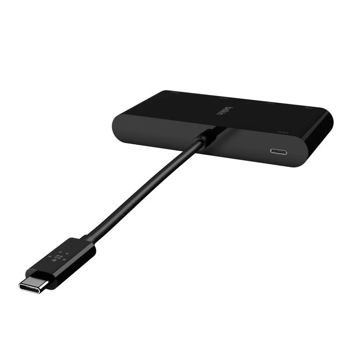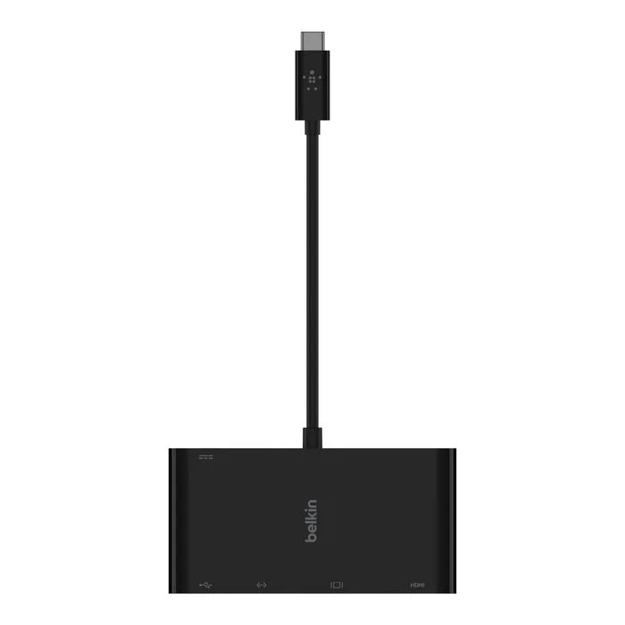 Keep watching and stay charged with a multimedia adapter that enables up to 100W of pass-through power. The five-port adapter supports Gigabit Ethernet, USB-A 3.0, VGA, 4K HDMI, and data transfer through USB-C®, making it the perfect tool in meetings, auditoriums, classrooms, or on the go. This simple plug-and-play technology is compatible with Mac and Windows laptops and USB-C devices.